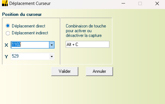 Si tu recherche les coordonnées spécifique, tu place la souris là où tu veux déplacer ta souris. Tu utilise 1 fois Alt+C et ça rempli les coordonnées où est la souris. Tu fait une 2eme fois Alt+C et tu verra l’aperçu visuel.